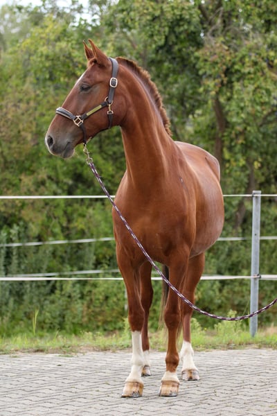 Sometimes you have to make decisions out of love and reason, which is why I am looking for a new 5* home for my 7-year-old PRE chestnut gelding. Amicello AP was born in 2018 and comes from a loving German PRE breeding farm in this region (Andalusian-Pearl/Saxony). He has full ANCCE papers. He has been by my side since his birth. Amicello is a character horse and therefore not suitable for beginners. He was gently started under saddle at 3.5 years old and has had breaks due to growth and physical development. For almost 2 years now, he has been regularly ridden again. Amicello goes well in a group as well as alone on trails (though he needs a confident rider here), and he is always manageable in every situation. No bucking, rearing, or running off in a panic. Amicello lives with me in a small herd, on 24/7 pasture in the summer and during the day on the paddock and at night in the box in winter. He is also familiar with open stable housing. He has a higher rank in the herd. Amicello is shod in front. He currently has a care share for once a week and a riding share that rides him once a week in riding lessons. Amicello performs all three gaits well under saddle, although he still finds cantering a bit challenging. He is always eager to please while riding and is very willing to learn. He has primarily been trained in dressage and is familiar with free jumping, ground poles, and double lungeing. We have already participated in various external training sessions and clinics, where he remained cool despite unfamiliar surroundings and excitement. In 2025, he also participated in the traditional Easter riding for the first time and mastered it with flying colors. I am looking for THE person who loves him just as much as I do and can provide him with a 5* home like the one he has with me. This is not a forced sale; the right place is more important than the price! His fitted Prestige Top Dressage saddle in size 17 inches can be purchased for an additional fee if needed, as well as other equipment upon request. A trial ride for a fee of €30 is possible at any time; this will be deducted from the sale to prevent riding tourism! Please, no beginners. No dealers. No riding schools.