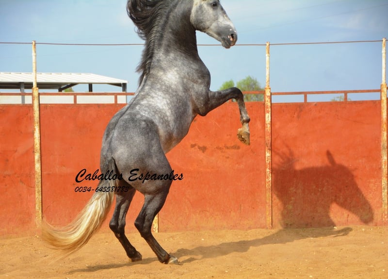 Ein toller, großrahmiger PRE Wallach, der jetzt richtig anfängt seinen Körper aufzufüllen. Er steht auf einem soliden Fundament, begleitet von einen harmonischen Gebäude. Dieser Wallach ist mit 3 sehr guten Grundgangarten ausgestattet ist in den Grundgangarten geritten. Er kann Schulterherein, Schenkelweichen, Galoppwechsel und an der Piaffe wird gearbeitet. Dabei zeigt er sich immer sehr brav und arbeitet gerne mit. Im Gelände war er auch schon. Der Wallach ist gut nachzureiten. Sein Züchter hat väterlicherseits auf den Mejorante Hengst Ules, der wiederum Sohn den Elitehengstes Impaciente (Camacho Benitez) ist, gesetzt. Mütterlichseits haben wir ein Yeguada Militar Stute, die Tochter des Pampero V (Marín García) ist. Das Pferd wird im Auftrag verkauft. Er kann gerne bei uns noch in Beritt bleiben. Eine AKU wird kurzfristig organisiert. Internationaler Transport.