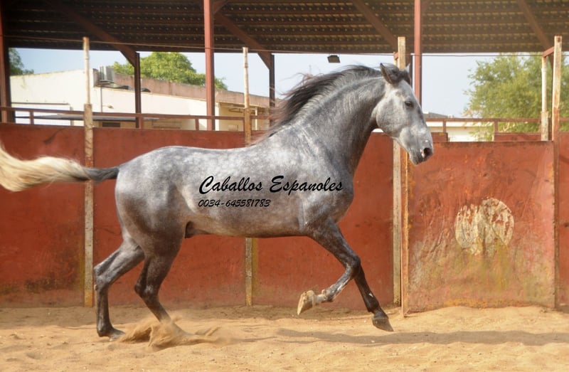 A fantastic, large-framed PRE gelding who is now really starting to fill out his body. He stands on a solid foundation, accompanied by a harmonious conformation. This gelding is equipped with 3 very good basic gaits and is ridden in these basic gaits. He can perform shoulder-in and leg-yielding. He always shows himself to be very well-behaved and enjoys working. He has also been out on trails. The gelding is easy to ride. His breeder has chosen the Mejorante stallion Ules on the sire's side, who is a son of the elite stallion Impaciente (Camacho Benitez). On the dam's side, we have a Yeguada Militar mare, who is a daughter of Pampero V (Marín García). The horse is being sold on behalf of the owner. He can stay with us for further training if desired. A pre-purchase exam can be organized at short notice. International transport available.