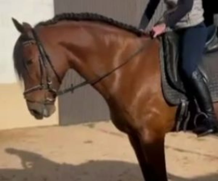 ffidabile, facile e avanzato nel dressage Vi presentiamo un cavallo che unisce sicurezza, facilità e un eccellente livello tecnico nel dressage. Sempre affidabile, sempre attento, offre al suo cavaliere una monta fluida e piacevole, sia in arena che all'aperto. Il suo carattere gentile e collaborativo lo rende un cavallo accessibile, ideale per progredire con sicurezza e piacere. Sotto la sella, si distingue per la sua precisione e leggerezza. Padroneggia perfettamente i movimenti laterali e i cambi di piede, ma anche il passaggio e il piaffe, con naturalezza e fluidità. La sua energia è equilibrata: avanza con dinamismo senza mai essere eccessivo, il che gli permette di lavorare con calma e senza tensioni. E fuori dalla pista, rimane altrettanto piacevole, godendosi le passeggiate con calma e sicurezza. Con radiografie aggiornate a disposizione, rappresenta una preziosa opportunità per un cavaliere alla ricerca di un cavallo affidabile e ben addestrato. Che siate un amatore esigente che desidera progredire nel dressage o un cavaliere alla ricerca di un partner affidabile per combinare lavoro e relax, lui sarà in grado di soddisfare le vostre aspettative con coerenza e generosità. IberHorse.com: Connettere i cavalieri con i cavalli perfetti per le loro esigenze. Se siete interessati a un cavallo che combina l'eccellenza nel dressage con la tranquillità necessaria per essere un compagno di passeggiate, non esitate a contattarci. Questo cavallo è pronto a trovare una nuova casa dove possa essere apprezzato e goduto. Non perdete l'opportunità di rendere questo meraviglioso cavallo parte della vostra famiglia o della vostra vita equestre!