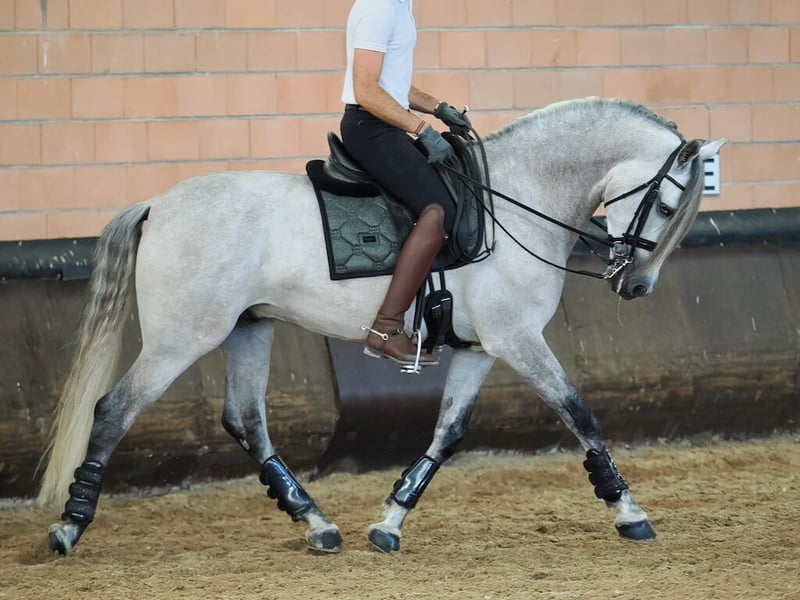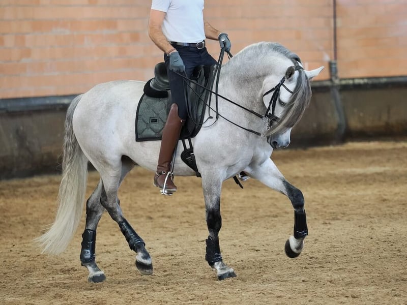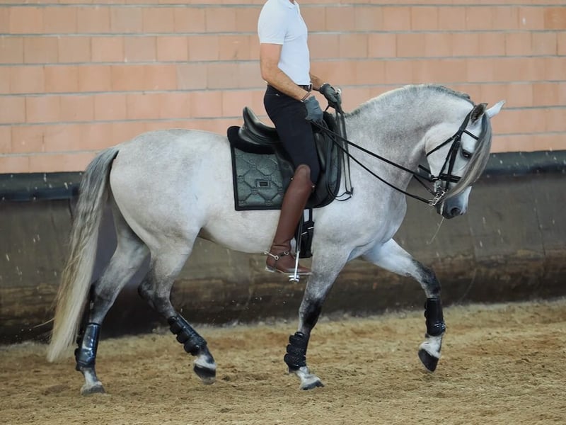 Wir präsentieren Ihnen diesen eleganten Pura Raza Española (P.R.E.) Wallach, geboren im Jahr 2019 mit einem Stockmaß von 165 cm. Er wurde sorgfältig in der klassischen Dressur ausgebildet und befindet sich aktuell auf Ausbildungsniveau 4. Er beherrscht fortgeschrittene Lektionen wie Passage und Pirouetten mit Leichtigkeit, Taktgefühl und Ausdruck, was sowohl seine sportliche Qualität als auch seine technische Ausbildung unter Beweis stellt. Sein Charakter ist einer seiner größten Vorzüge: edel, ausgeglichen und kooperativ – ideal für ambitionierte Freizeitreiter oder Reiter mit Erfahrung, die einen verlässlichen Partner für den weiteren sportlichen Weg suchen. Er zeigt stets Arbeitsbereitschaft und eine positive Einstellung gegenüber neuen Herausforderungen. Seine Bewegungen sind großzügig, elastisch und verfügen über einen natürlichen Rhythmus – Eigenschaften, die in der Dressur besonders geschätzt werden. Seine harmonische und funktionelle Konstitution erlaubt ihm elegante, ausbalancierte Bewegungen, auch bei anspruchsvollen Lektionen. Dieser Wallach befindet sich im Zentrum Spaniens und stellt eine ausgezeichnete Gelegenheit für alle dar, die einen gut ausgebildeten Dressurpartner mit Qualität und Entwicklungspotenzial suchen.