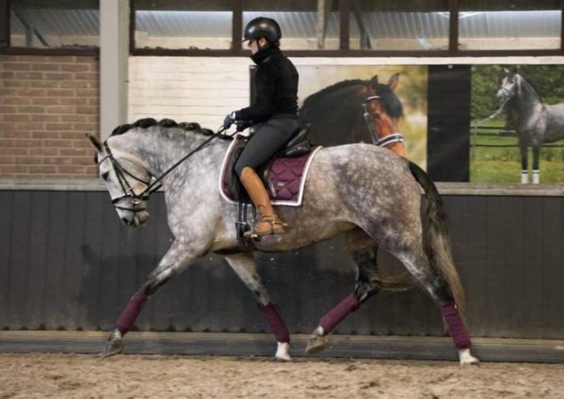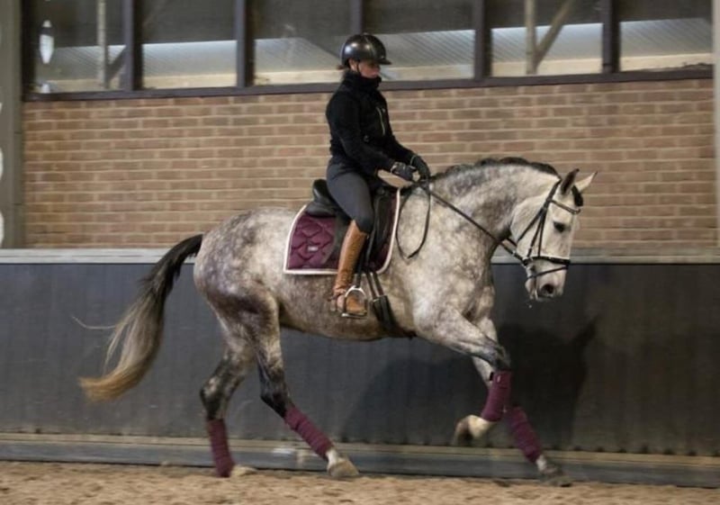 Gatsby, born May 2017, is a purebred PRE gelding. He stands approximately 1.64 meters (16.1 hh) tall and is a gray (white) horse. He is playful, affectionate, and very people-oriented. He came to me at the age of 3.5 years. Initially, he was worked from the ground and we went on many walks. After gentle riding training began at 4.5 years old, Gatsby is currently being exercised recreationally and further educated. This includes riding on the arena and in the field, as well as fascia work and groundwork. He is farrier- and loading-friendly, knows small children, dogs, tractors, and traffic. Gatsby is healthy, eczema-free, vaccinated, and dewormed. Gatsby requires clear, friendly guidance and is only suitable for an experienced horse person. He is gentle and polite in handling, eager to please, and wants to do everything right. However, he is also sensitive, needing patience, consistency, and a gentle hand. If these criteria are met, Gatsby is a real pleasure to ride; he is motivated and eager to learn. He feels most comfortable in a small herd with his own paddock box for the night. My hope is to find Gatsby’s soulmate and to give him a forever home. Priority goes to placement over price. Videos and further information gladly available upon request. No sales to dealers or riding schools.