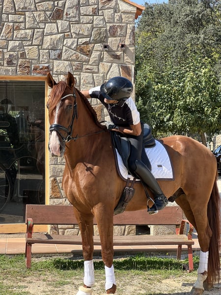 Caballo de gran corazón, le gusta entrenar en pista, nivel 4 de doma clásica, con passage y piaffe. Muy noble con un carácter espectacular, muy bueno. En rutas, caballo de confianza Xrays limpias y piro free