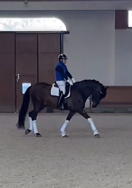 Gecastreerde PRE van 2018 Vernieuwd niveau M Super goed karakter, extreem volgzaam en rustig paard, vrij van enige ondeugd zowel aan de grond als onder het zadel, werkt zeer goed zowel met een teugel als met een bit, regelmatige bewegingen, bombproof paard, ook gereden door een para dressuur ruiter.