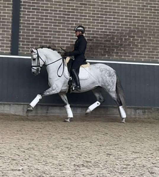 super gave PRE ruin van 7 jaar. (Juni ‘18) Hij is in het bezit van ANCCE papieren met Carta. (v. VICTORIOSO XL V) Hij meet ongeveer 1.60m, maar toont (zeker onder het zadel) door zijn voorkomen en front wel groter. Wij hebben hem vanaf juni ‘24 in ons bezit, en hebben hem in die tijd goed leren kennen. Hij is súper lief in de omgang, en hecht zich enorm aan zijn vaste ruiter/verzorger. Zeer sociaal ook naar andere paarden. Onder het zadel is hij heel erg gaaf! Hij kan heel ruim bewegen en denkt altijd met je mee. Ook kan hij moeiteloos de Spaanse pas, en laat hij zien zeer veel aanleg te hebben voor passage/piaffe. Hij is heel licht en fijn te rijden, zowel in de hand als aan het been, en zit gemakkelijk. Hij zou zéker niet misstaan in de dressuurring! Hij gaat graag mee naar het bos en loopt ook gemakkelijk voorop als er een ander paard bij is. Laadt super makkelijk op de trailer. Hij is nu gewend om overdag buiten te staan en ‘s nachts op stal. Hij heeft geen hoefijzers, en heeft die ook niet perse nodig gezien de kwaliteit van zijn voeten. Toen hij bij ons kwam had hij ze wel, dus dat is ook zeker oké.