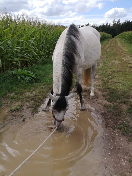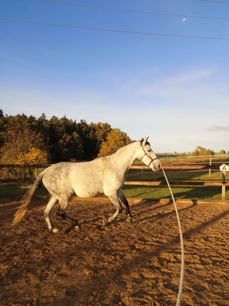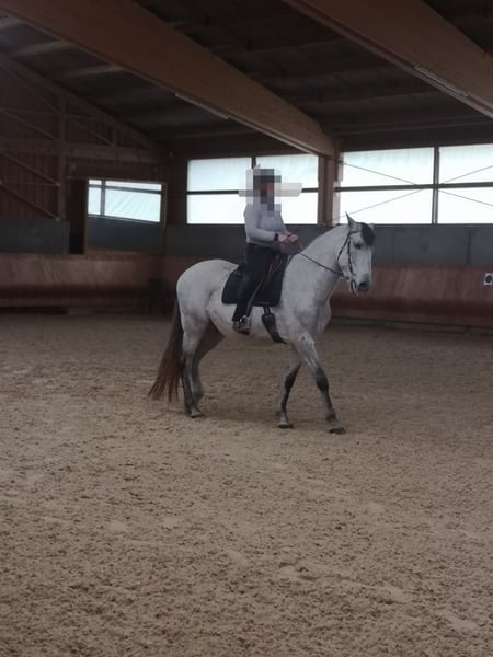 Duque ist im Mai 2018 in Spanien geboren, wurde Ende 2021 zu einem PRE Züchter nach Deutschland importiert und dort nach klassischen Grundsätzen eingeritten. Ich habe ihn dann im April 2022 gekauft und nach einem heftigen Wachstumsschub wurde er nur vom Boden gearbeitet und ab Mitte 2024 wieder geritten. Seitdem ist Duque unter professionellem Teilberitt. Duque ist ein sehr feines und sensibles Pferd, manchmal auch unerwartet schreckhaft und zeigt deutlich, wenn er Anforderungen nicht umsetzen kann, oder zum Beispiel der Sattel nicht 100% passt. Deshalb sucht Duque einen besonders einfühlsamen Reiter, bitte keine Anfänger. Ich wünsche mir für ihn, dass er weiter nach klassischen Grundsätzen in Balance gearbeitet wird. Duque beherrscht die Seitengänge im Schritt und Trab und hat eine sehr schöne Bergaufgaloppade. Er läuft barhuf. Bitte nur Anfragen, bei denen Duque mindestens in einem Offenstall untergebracht werden kann. Derzeit steht er in einem HIT Aktiv Stall und liebt und braucht den Kontakt und das Spielen mit anderen Pferden. Er ist nicht besonders ranghoch, aber auch nicht rangniedrig und meistens sehr freundlich zu anderen Pferden. Duque ist regelmäßig geimpft und dem Zahnarzt vorgestellt. Um Reittourismus zu vermeiden, werden beim Probereiten 40 Euro fällig, welche selbstverständlich beim Kauf verrechnet werden. Platz vor Preis. Kontaktaufnahme wenn möglich über WhatsApp.