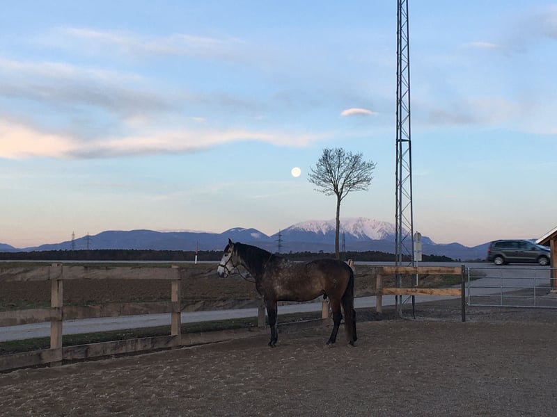 Verkaufe meinen extrem hübschen PRE Wallach Garabato Don, Rufname: Scirocco. Scirocco hat bestimmte Anforderungen an seinen Lebensplatz, die ich ihm leider nicht bieten kann. Er braucht unbedingt: Offenstallplatz mit 24h Heu stabilen, trockenen Unterstand (nicht nur ein Weidezelt) Kein Stroh (auch nicht als Einstreu) Eine konstante, soziale Gruppe Der 8 jährige Wallach wird nach den Prinzipien der klassischen Reitweise schonend ausgebildet und zeigt sich stets bemüht. Er geht alleine und in der Gruppe ins Gelände, ist dabei immer gut zu händeln, braucht aber generell eine/n souveräne/n ReiterIn. Er wird derzeit nur gebisslos geritten, was ihm auch deutlich mehr zusagt als mit Gebiss. Er kennt aber auch Gebiss. Zähne werden regelmäßig kontrolliert. Er kennt klassische Handarbeit sowie kleine Zirkuslektionen und Freiarbeit, was ihm besonders viel Freude macht. Er ist barhuf unterwegs, aber eher empfindlich. Bei steinigen Böden braucht er zumindest Hufschuhe. Hatte auch schon Beschlag. Er hat außerdem eine Fehlstellung vorne (Zeheneng), die seinen Bewegungsablauf aber nicht beeinträchtigt. Auf Wunsch kann auch das Zubehör miterworben werden (Signum Sattel, Signum Reitpad, sowie Trensen und Kappzaum). Scirocco wird nur in einen Offenstallpmlatz vergeben, an jemanden der sich ehrlich Zeit nimmt dieses tolle Pferd auf verschiedenen Ebenen auszulasten. Bei Fragen gerne melden! Kennenlernen und Probereiten nach Terminvereinbarung.