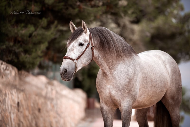 MACATERO DE CRIS ist ein großrahmiger barocker PRE-Wallach. Er ist mit seinen bereits 1,75 m ein stattlicher Mann und wächst noch etwas. Er hat wunderbrare Bewegungen und ist sehr gut für die Barockdressur geeignet. So groß wie er ist, so ein großes Herz hat er auch! Verschmust und anhänglich! Immer aufmerksam. Er ist in der klassischen Dressur angeritten. AKU, Röntgenbilder, Zahnbehandlung und Hufbehandlung inkl. Mehr Informationen via +49 171 528 48 65