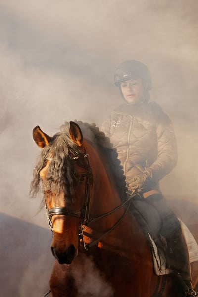 Duende to 8-letni ogier z ojcem z PSL i matką z PRE, pochodzący z słynnego stada „Bohorquez” w Hiszpanii. To, co wyróżnia go spośród innych koni iberyjskich, to fakt, że był hodowany do walki byków na koniu. Jest elastyczny, niezwykle czujny, zawsze zrównoważony i gotowy do wykonania Twoich poleceń. Tworzy bardzo głęboką więź z ludźmi wokół niego, jest jednym z tych koni, z którymi trzeba nawiązać relację, dlatego potrzebuje domu na zawsze, w którym będzie kochany. Duende ma wyjątkowy charakter; początkujący jeździec może na nim jeździć i galopować bez problemu (dostępne filmy). Jest spokojny na pastwisku, to koń, który chce robić wszystko dobrze i podczas każdego treningu daje z siebie 300%. Trenuje ujeżdżeniowe ćwiczenia Grand Prix, ma duży talent do piaffe, passage oraz ćwiczeń rozciągających i zbiorowych. To koń mistrzowski, który w delikatny sposób nauczy Cię, jak używać pomocy, i pozwoli na błędy. Jest raczej temperamentny niż leniwy, ale nie jest nadmiernie elektryczny, szybko reaguje na pomoce, idzie do przodu i zawsze Cię woła, gdy przechodzisz obok jego stajni. Ma dopiero 9 lat i niezwykłą głowę, to koń, który będzie Ci sprawiał radość przez wiele lat. Jest bardzo łagodny w ręku, wykonuje ćwiczenia w snaffle, jest bardzo łatwy w obsłudze i posiada dobre zdjęcia rentgenowskie całego ciała. Filmy i dodatkowe informacje dostępne na życzenie.