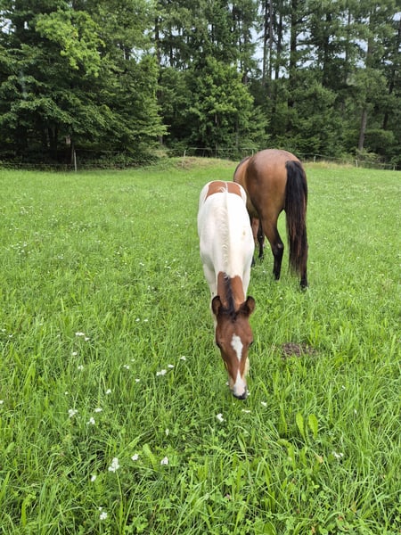 "Finest Rocco 66" wurde in der Nacht zum 6. Juni bei uns geboren. Er begeistert durch seinen präsenten Ausdruck, seiner Neugier und punktet durch den athletischen Körperbau mit sehr schwungvollen Bewegungsabläufen. Seine Vollgeschwister, wie bspw. die Falbenstute "Roxy" aus 2024, welche derselben Anpaarung entstammt lassen keine Wünsche offen und sind sehr leicht auszubilden und vital. Sein Vater "EH One Of Lena's Finest", ein europaweit bekannter und erfolgreicher Quarter Horse Hengst - ein herrlicher Buckskin vom Eliesenhof.´ Rocco's wunderschöne Mutter, "Romy" ist eine blütige, äußerst zugewandte Dt. Reitpony Stute. Er wird vom ZSSE e.V. als Quarter-Pony eingetragen und bewertet und besitzt einen Verbands-Equidenpass. Das geschätzte Endmaß beträgt 1,50cm Rocco kann ab Januar 2026 abgeholt werden. Er ist gechipt, Tetanus geimpft und wird regelmäßig entwurmt. Pferdehänger-Fahren zusammen mit seiner Mutter kennt er schon. Desto artgerechter die zukünftige Haltung ist, desto verhandlungsbereiter sind wir. ***Wir züchten jedes Jahr 2-3 Quarter-Ponys*** Unsere Fohlen dürfen artgerecht im Herdenverbund auf der Weide und im Aktivstall unter besten Voraussetzungen und lückenlosen Überwachung nach Bioland-Bedingungen aufwachsen. Da auch unsere Kleinkinder täglich mit im Stall sind, legen wir Wert auf umgängliche, nervenstarke Pferde. Außerdem lernen unsere Fohlen auch von klein auf andere Tierarten kennen, wie z.B. bei der Mischbeweidung mit unseren Rindern und sind daher schon früh sehr souverän. Durch guten täglichen Umgang lernt unser Nachwuchs nach dem Absetzen in wenigen Tagen das Fohlen-ABC, denn sie folgen uns jetzt schon ohne Halfter in den Hänger und Co. - beste Natural Horsemanship Voraussetzungen! Als nächste Station stellen wir uns eine gute Fohlenweide für Rocco vor und wünschen uns zukünftig ein förderfähiges und artgerechtes Zuhause für ihn. Bei Interesse freu ich mich über einen Anruf oder eine Nachricht, gern auch per Whatsapp 0176 56798081!