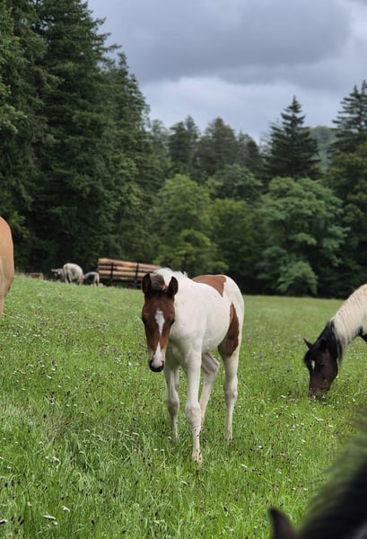 "Finest Rocco 66" è nato nella notte tra il 5 e il 6 giugno presso di noi. Si distingue per il suo espressivo atteggiamento, curiosità e per il corpo atletico, accompagnato da movimenti molto energici e armoniosi. I suoi fratelli interi, come ad esempio la puledra baia "Roxy" del 2024, proveniente dalla stessa monta, non lasciano nulla a desiderare: sono molto facili da educare e vitali. Suo padre, "EH One Of Lena's Finest", è un rinomato e di successo stallone Quarter Horse europeo – un magnifico buckskin proveniente dall’Eliesenhof. La sua splendida madre, "Romy", è una cavalla di sangue, molto affettuosa, di razza German Riding Pony. Rocco è iscritto e valutato come Quarter Pony dal ZSSE e possiede un passaporto ufficiale. La sua altezza stimata è di circa 1,50 m. Può essere ritirato a partire da gennaio 2026. È dotato di microchip, vaccinato contro il tetano e regolarmente sverminato. Già abituato a viaggiare in carrozza con la madre. Più la futura sistemazione sarà naturale e rispettosa delle sue esigenze, più saremo disposti a negoziare. ***Ogni anno alleviamo 2-3 Quarter Pony*** I nostri puledri crescono nel rispetto delle loro esigenze, in branco sui pascoli e in box attivo, secondo le condizioni biologiche e sotto costante sorveglianza. Poiché anche i nostri bambini piccoli sono presenti quotidianamente in stalla, ci assicuriamo che siano cavalli socievoli e nervi forti. Inoltre, i nostri puledri imparano fin da piccoli a conoscere altri animali, grazie alla gestione mista con i nostri bovini, diventando così molto sicuri di sé già in giovane età. Attraverso un buon contatto quotidiano, i nostri giovani imparano in pochi giorni l’ABC del puledro, poiché ci seguono già senza redini in carrozza e simili – le migliori basi per il Natural Horsemanship! Per il futuro, immaginiamo una buona pascolo per Rocco e desideriamo trovare per lui una casa che sia adatta, rispettosa e che favorisca il suo sviluppo. Se siete interessati, vi invito a chiamarmi o a inviarmi un messaggio, anche tramite WhatsApp: 0176 56798081!