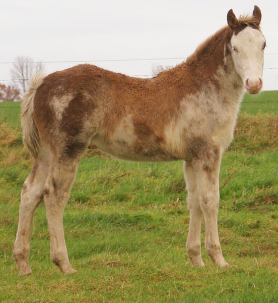 In auffälliger chestnut overo Optik präsentiert sich dieses Hengstfohlen mit 2 blauen Augen, Vater: Paint, Mutter: Deutsches Reitpony, das Fohlen hat volle Papiere, wüchsig, fröhlich, besonders