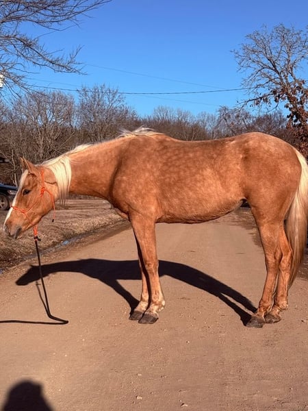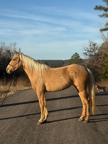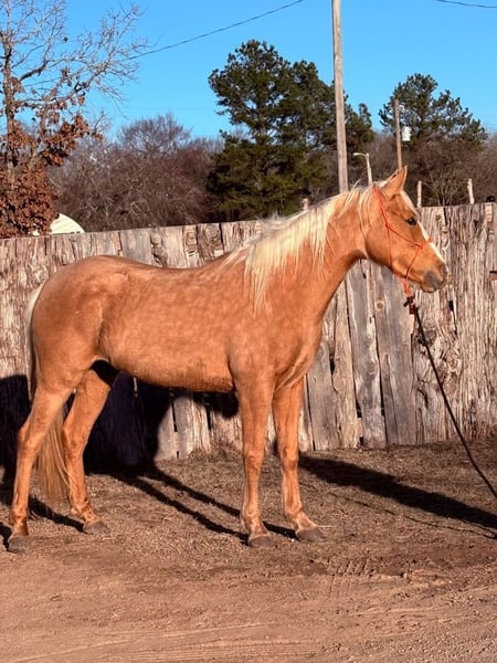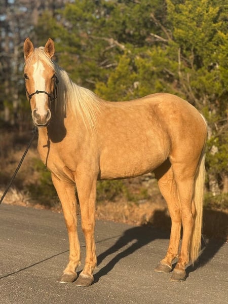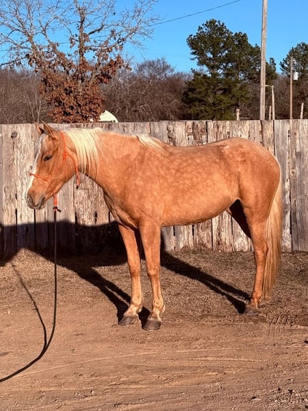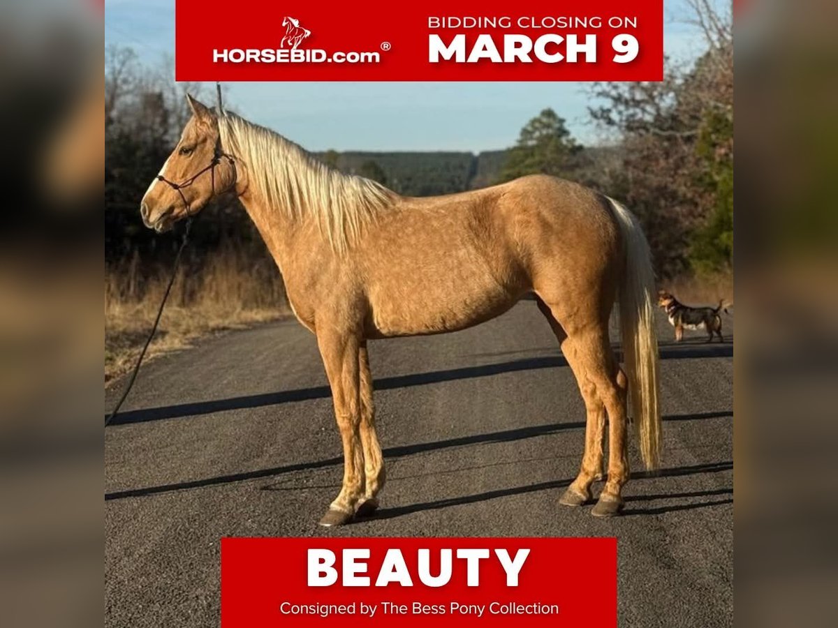 ℳ𝒶𝓇𝒸𝒽 ♦️𝐑𝐈𝐃𝐄𝐑'𝐒 𝐂𝐇𝐎𝐈𝐂𝐄♦️ Happening now thru MONDAY | MARCH 9th - Available EXCLUSIVELY on HorseBid's website! For more details and to register visit: www.Horsebid.com CONSIGNOR CONTACT: The Bess Pony Collection 270-804-6902 LOCATION: Antlers, OK BREED: Quarter Pony REGISTERED: No COLOR: Palomino HEIGHT: 14 AGE: 4 GENDER: Beauty "Beauty is a gorgeous 4 year old dappled golden palomino that stands a solid 14 hands and has a nice clean cut, correct confirmation. She was bred, born, raised and trained in our family and has been broke natured and friendly since day one. She has a great foundation and will walk , trot and lope in both directions correctly. She will also yield all 4 quarters separately and has a soft one rein stop. Beauty has also been many miles in the woods and down the trail and is a good solid trail horse. She has been on many hog hunts and will go absolutely anywhere you point her, no matter how rough the terrain. She isn’t bothered at all by the commotion of the dogs running by her in their excitement of being turned loose. She has been ridden by different riders and has no issues with changing riders. She will ride anywhere in a group or ride off by herself. She is a good solid and confident trail horse. Beauty is that special kind and would make a great addition to anybody’s family as an all around family horse. For any questions on Beauty text or call David at 270-804-6902"