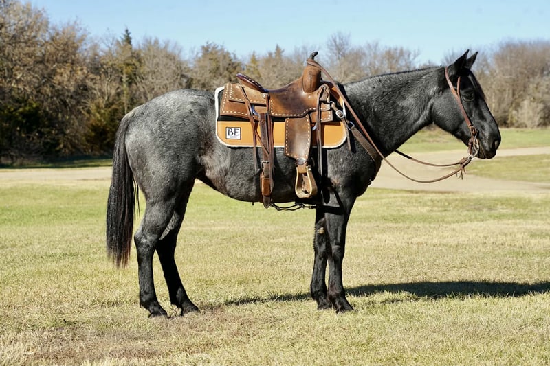 🎁 𝐈𝐍 𝐓𝐈𝐌𝐄 𝐅𝐎𝐑 𝑪𝒉𝒓𝒊𝒔𝒕𝒎𝒂𝒔 🎁 Happening now thru TUESDAY | DECEMBER 9th - Available EXCLUSIVELY on Ponybid's website! For more details and to register visit: www.Ponybid.com CONSIGNOR CONTACT: Kp Ranch 402-8417763 LOCATION: Corsica SD BREED: Quarter pony REGISTERED: No COLOR: Blue roan HEIGHT: 14 AGE: 8 GENDER: Mare Super fancy 9 year old blue roan quarter pony Mare, 14 hands. Well built, athletic, handy, made to go all day long. She's worked daily on the ranch right beside the big horses , used at the sale barn, sorted in the feedlot, pushed lots of cattle up the return alley while we practice at home and the jackpots to get lots of arena exposure as well. She will cover lots of country and can handle long, hard days. This mare is a tough little go-getter, a lot of horse in a small package, she doesn’t knows she’s little stout from the horn rather it’s calves or grown cows. Has been roped on some out in the pasture and started breakaway roping in the arena. Good for calving, pull a calf sled no problem. Great for dragging calves to the fire all day. Crosses anything you can find and will go where you point her, side pass, backup— nice and low to the ground for getting gates, drinks out of the cooler, and everything else you love a smaller horse for. Broke to hobbles, trim and shoe, loads on her own. Big enough to carry adults or kids. Feel free to give us a call or text with questions 402-841-7763