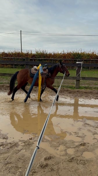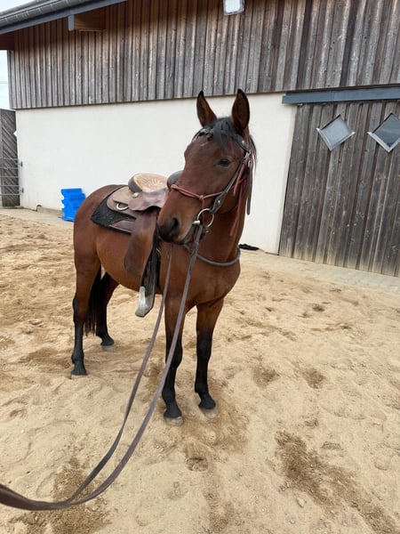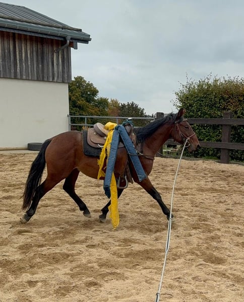 For sale is a gelding born in spring, currently three years old, with no known pedigree. He stands approximately 14.1 hh and has a solid, compact build. He has already been well-grounded and prepared for riding (due to his age, he has not yet been backed). He rides calmly with saddle and bridle, and is comfortable with objects on his back. We have also ridden him several times in double longeing. He is quite laid-back and relaxed, making him a great leisure partner or suitable for someone with ambitions. He is very sociable in a group setting and is familiar with both open stalls and box stalls. In handling, he is very easygoing and cooperates well with everything. No known illnesses or allergies. A health check (AKU) can be arranged if desired. A trial ride costs €35, which will be credited towards the purchase if the horse is bought. Please call or message us at 0157 36803742. All information is provided without guarantee. Subject to price changes. Transport can be arranged. Online purchase possible.