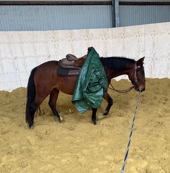 Zum Verkauf steht ein, im Frühjahr 3 Jahre alter, Wallach ohne Abstammung. Aktuell ist er ungefähr 147cm groß und hat ein gutes kompaktes Gebäude. Er ist bereits gut am Boden gearbeitet und gut auf das Anreiten vorbereitet. (Aufgrund seines Alters ist er noch nicht angeritten) Er geht entspannt mit Sattel und Trense und auch mit Gegenständen auf dem Rücken. Auch in der Doppellonge haben wir ihn einige Male gefahren. Er ist ziemlich cool und gelassen und wird mit Sicherheit ein tolle Freizeitpartner oder auch was für jemand mit Ambitionen. Auch in er Gruppe ist er sehr verträglich und kennt Offenstall sowie die Box. Im Umgang ist er auch einfach toll und macht alles gut mit. Krankheiten oder Allergien sind nicht bekannt. Eine AKU darf gerne gemacht werden. Für das Ausprobieren des Pferdes berechnen wir 35€. Beim Kauf wird dies gutgeschrieben. Gerne anrufen oder eine Nachricht senden 0157 36803742 Alle Angaben ohne Gewähr, Preisänderungen vorbehalten, Transport möglich, Onlinekauf möglich