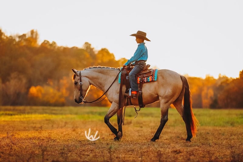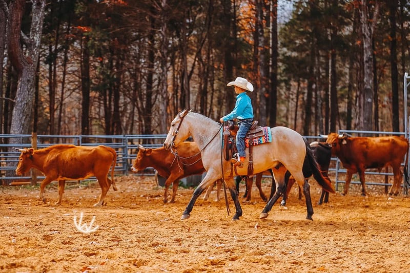 🎁 𝐈𝐍 𝐓𝐈𝐌𝐄 𝐅𝐎𝐑 𝑪𝒉𝒓𝒊𝒔𝒕𝒎𝒂𝒔 🎁 Happening now thru TUESDAY | DECEMBER 9th - Available EXCLUSIVELY on Ponybid's website! For more details and to register visit: www.Ponybid.com CONSIGNOR CONTACT: Rockin W Ponies • Double R Ranch Rachel Vick LOCATION: Lyles TN BREED: Quarter Pony REGISTERED: No COLOR: Buckskin HEIGHT: 52” AGE: 7 GENDER: Gelding Meet Gus! The most incredible buckskin gelding who checks every dream pony box from the moment you see him. At 7 years old and standing 52”, he is the perfect combination of quiet kindness mixed with talent and ability. He is extremely well-broke and rides just like a big horse with real handle, real training, and real feel. He has everything it takes to be the PERFECT all around pony for your child, whether you need a babysitter or a step up pony for your kiddos to excel with and move to the next level, no matter the discipline! He is also big enough to carry a smaller adult, no problem. Gus is as kind and kid-loving as they come. Easy to catch, gentle for little hands to groom, stands quietly for the farrier and vet, loves attention and an occasional snack! He is polite, patient, steady, and the same every ride. With his old soul, and his gentle confidence building nature- it’s easy to see why parents have trusted Gus to help teach their beginners how to ride! Under saddle, Gus is the kind of pony parents dream of finding. You can saddle him, hand the reins to your child, and feel comfortable. He is steady, quiet, dependable, and adjusts perfectly to his rider. He will poke along for timid kids, ride alone or in a group, cross water, step over logs, and stay level headed. When a more advanced kid climbs on, he becomes more responsive, athletic, and ready to work which makes him a rare pony who will grow with your children instead of being outgrown! Gus is extremely well broke and rides with the training of a seasoned ranch horse. He spins, neck reins, moves off your leg, and rides very correct and honest. He has been a turn back pony for cutting and works confidently in sorting and team penning as well. Gus is also an excellent roping pony and has done heeling and steer stopping. He enjoys going after a cow, and will pin his little ears and put his rider right where they need to be. He runs a neat and clean barrel pattern and will settle right back down to any pace if you need him to trot or slow lope the pattern. He is also a wonderful little English pony who jumps willingly, stays balanced, and is easy to guide and ride. He’s so responsive, and watching him trot around neat and proper, will make you smile big. He is truly THE coolest pony and you won’t find any so versatile and genuinely talented at everything! Our buddy Gus is the kind of pony families keep for a lifetime. If Wade didn’t already have a pony this size- Gus would not be for sale. Set your kids up for success with a beautiful buckskin unicorn!! He sells 100 percent sound with a recent clean PPE performed by Dr. John Laster DVM of Todd County Animal Clinic which will be included at the end of the pictures. Located in Lyles TN. Nationwide shipping available- we are happy to help arrange transport. With the recent outbreak of EHV-1, Gus is more than welcome to remain with us until it’s deemed safer to travel! We are also happy to hold Gus here for Santa until Christmas, free of charge! For more information or to schedule a visit, contact Rachel Vick at 931 623 1706.