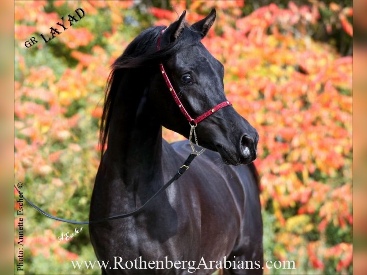 Reinerbiger rein ägyptischer Vollblutaraber-Rapphengst GR LAYAD (Rappe ohne Abzeichen) vom goldprämierten Rapphengst GR Ishad aus einer Tochter des berühmten GR Faleeh (Rappe, Schausieger, exportiert nach Kuwait) Mutterlinie Abayyan! Fantastischer exotischer Typ, Größe, super Gebäude & Bewegungen, wundervoller Charakter, bewährtes Spitzenpedigree sowie üppiges Langhaar zeichnen ihn aus! Erste Fohlen 2026! Insgesamt stehen Ihnen insgesamt 15 rein ägyptische Hengste zur Verfügung - teils bei uns im Gestüt, teils auswärts auf Deckstation bzw. über Frischsamenversand und zum Teil auch mittels Gefriersamen - die meisten Rappen, etliche davon reinerbig, etliche Goldprämiert ! Weltbekannte Spitzenhengste teils gold-prämiert / Körungssieger, teils mit großen Schauerfolgen sowie erfolgreicher Nachzucht in der ganzen Welt! Rappen & Schimmel! Alle Hengste sind SCID & CA frei, Decktaxen ab Euro 700,- (je nach Hengst und Rasse / Abstammung der Stute) - genaue Deckbedingungen auf Anfrage. Außerdem haben wir sowohl aus unserer eigenen, weltweit erfolgreichen Zucht sowie von Deckkunden immer wieder Fohlen, Jung- und auch Zuchtpferde anzubieten - mehr Infos teilweise auf unserer Homepage www.Gestuet-Rothenberg.de bzw. alle aktuellen Verkaufspferde gerne auf Nachfrage. Nähere Infos gerne telefonisch unter 0049 / 0 90 91 / 37 07 oder per e-mail (bitte Anfragen per e-mail NUR mit vollständigem Namen und Adresse - danke!). Besuchen Sie uns auch auf Instagram: @RothenbergArabianStud