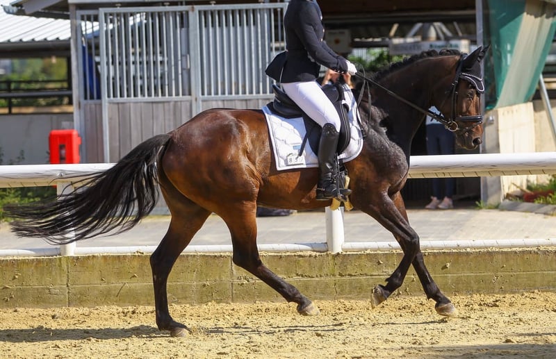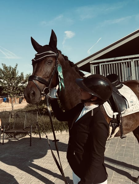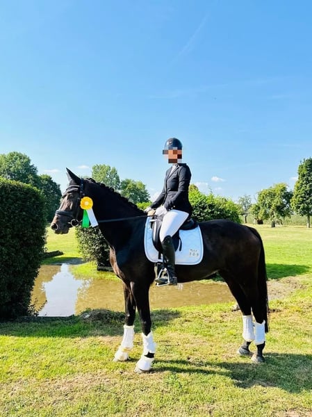 Püppi ist eine bildschöne dunkelbraune Rheinländerstute von Riccione, geboren im Mai 2012 und somit 14 Jahre alt. Sie hat ein Stockmaß von 1,65m und verfügt über drei sehr gute Grundgangarten. Püppi ist seit fast 6 Jahren in unserem Besitz und wir haben sie mit professioneller Unterstützung bis hin zur Klasse L ausgebildet. Sie ist mehrfach siegreich A* platziert und kann auch mehrere aktuelle A** und L-Platzierungen vorweisen. Unter dem Reiter zeigt sie sich sensibel, aufmerksam und leistungswillig. Sie ist allerdings kein Anfängerpferd und sucht einen neuen ambitionierten Reiter, der ihr Sicherheit gibt und sie weiter fördert. Wir geben sie nur sehr ungerne ab und auch nur wegen Zeitmangel auf Grund von Studium und Arbeit. So werden wir ihr leider momentan nicht mehr gerecht. Es handelt sich also nicht um einen Notverkauf und sie wird nur in beste Hände abgegeben. Aktuelle gute Röntgenbilder liegen vor, Videos auf Anfrage.