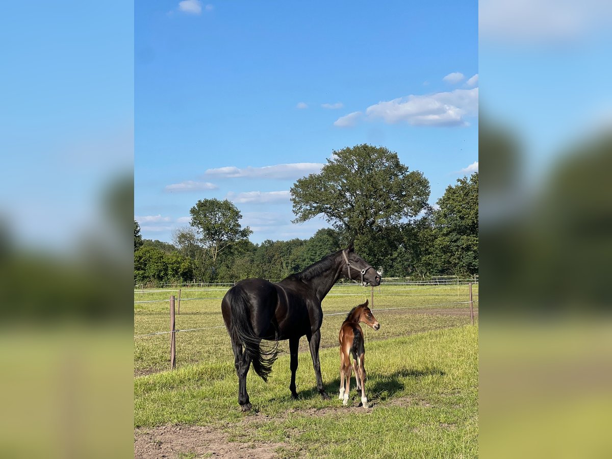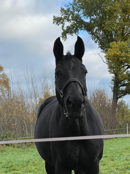 Dkl. Brown Verband Premium Mare, born 2010, approximately 1.70 m By Dancier, Dam Sire: Wolkenstein II (Granddam Sire: Star Regent xx) Currently in foal to Dynamite, due in March 2026 Dynamite (Debutant PS, Dam Sire: Feinrich) – Standing at Kanziora Breeding Station In 2022, she foaled a filly by Escolar (sold to the USA), and in 2024, a colt by Benicio (sold within Germany). - Previously ridden and placed in young horse competitions - She is very people-oriented, completely herd-safe, uncomplicated, and well-behaved - Easy to load and unproblematic at the blacksmith For sale due to discontinuation of breeding activities