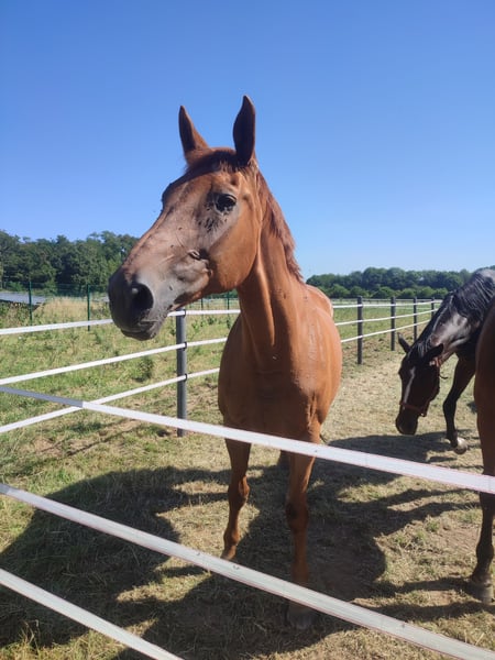 Ich suche auf diesem Wege ein neues zu Hause für meine Stute Coronada. Coro ist 2007 geboren, 167cm groß und stammt ab von Coronados Boy x Rohdiamant x Weltmeyer. Coronada ist inzwischen seit 13 Jahren in meinem Besitz und war in der Zeit nie krank und/ oder verletzt. Ich war mit ihr von E- bis L-Dressur platziert, aus Zeitgründen ist sie inzwischen aber mehrere Jahre aus dem Training und hat in der Zeit zwei Fohlen bekommen. Fleur (von Fürstenball) ist Hannoveraner Prämienanwärterin und Sweety (von San to Alati) ist zwei Jahre alt. Beide Male hat Coro unproblematisch aufgenommen und ist eine sehr fürsorgliche Mutterstute. Aktuell läuft sie barhuf 24h auf der Wiese in einer gemischten Herde. Ich wünsche mir für sie ein zu Hause, wo sie geliebt und umsorgt wird. Ich könnte sie mir perfekt als Beisteller oder Mutterstute vorstellen. Sie könnte auch wieder antrainiert werden, ist allerdings kein Anfängerpferd. Sie zeigt keine Unarten wie Bocken oder Steigen, kann sich aber stark machen. Bei Ausritten hatte sie immer lieber Gesellschaft. Theoretisch könnte ich sie auch wieder antrainieren, dann würde der Preis aber steigen. Selbstverständlich ist Coro schmiede- und verladefromm.