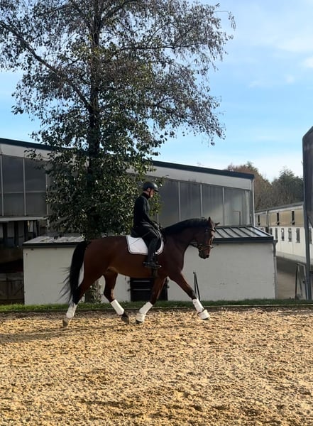 Verkaufe eleganten Rheinländer Wallach, geb. 2015, in schönem Braun. Mit einem Stockmaß von 174 cm ist er ein beeindruckender Partner für den Dressursport. Der gut ausgebildete und talentierte Wallach überzeugt durch sein angenehmes Wesen und seine Bereitschaft, Neues zu lernen. Vivo ist aufgrund seines braven Wesens auch sehr gut nur als Freizeitpferd zu empfehlen. Er ist geländesicher und brav egal ob alleine oder in der Gruppe. Vivo ist verschmust und immer freundlich zu Mensch und anderen Pferden. Im Umgang ist er völlig unkompliziert. Für weitere Informationen und Terminvereinbarungen stehe ich gerne telefonisch zur Verfügung. Bitte nur Anrufe! Kein WhatsApp oder andere Nachrichtenapps!