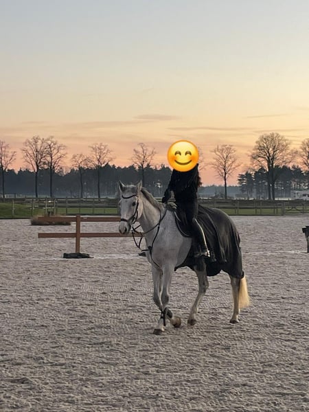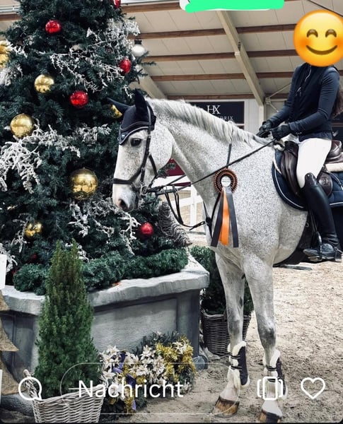 13-year-old grey gelding by Cassini Boy Junior x Lancer Charlie has been in our possession since he was 4 years old but has not been fully utilized since our daughter started riding. Therefore, he is now looking for a new environment. Currently, Charlie has won classes in A and L jumping, but he is explicitly NOT offered as a competition or sport horse. He is quite particular in the jumping course and becomes quickly nervous at higher jumps. We feel that he has lost his enjoyment of jumping, which is why we want to rehome him as a leisure horse. He has never bucked in his life but prefers a calm rider who can sit independently without relying on the reins. He would likely suit an inexperienced rider as well, provided that at least initially, he is ridden with draw reins. Charlie is experienced in riding out alone and in groups, has been on multiple holidays with us, has encountered working equitation obstacles, and has even undergone cattle training. He knows basic dressage exercises ("for everyday use") such as extended trot, half-pass, and traversal steps, but has not been extensively trained in these areas. He is suitable for teenage riders and is very comfortable to sit on. Despite his size, he is not a heavy horse. In daily handling and interaction, he is extremely well-behaved: he is farrier- and loading-friendly, behaves well at the vet, is compatible with other horses, and is familiar with dogs, children, tractors, etc. He is always friendly, enjoys cuddling, leads calmly everywhere, and loves being around people. At four years old, we had a comprehensive X-ray examination performed; since then, he has been healthy and sound every day. He is regularly vaccinated and dewormed, has seen the dentist, and receives chiropractic care internally if needed. He has been barefoot without issues for years. Charlie is currently kept in a paddock box with daily turnout on pasture. He is not offered in a box-only environment, nor to dealers or riding schools. Please contact us via WhatsApp at 0177 83 99 357.