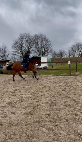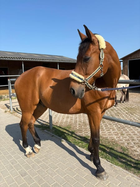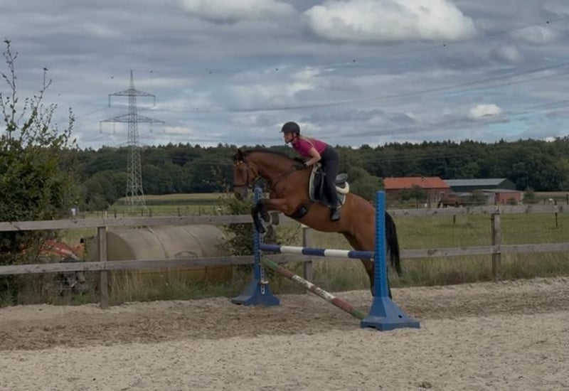 15-jähriger Rheinländer-Wallach mit einem Stockmaß von ca. 164 cm sucht ein neues Zuhause. Der Wallach wird als Freizeitpferd mit Freude am Springen verkauft. Aufgrund seines sensiblen und tendenziell schreckhaften Charakters benötigt er einen erfahrenen Reiter, der ihm Sicherheit und Ruhe vermittelt. Hat man sein Vertrauen gewonnen, zeigt er sich als zuverlässiger und angenehmer Freizeitpartner. Im täglichen Umgang ist er unkompliziert, verspielt und hat Spaß an kleinen Tricks. In der Bodenarbeit sowie an der Longe ist er gut händelbar, zeigt sich jedoch auch hier gelegentlich umweltorientiert. In der Gruppe geht er brav ins Gelände und orientiert sich dabei gut an den anderen Pferden. Gesundheitlich weist er einen Bockhuf auf, der ihn weder im Alltag noch bei der Arbeit einschränkt. Aktuelle Röntgenbilder sind vorhanden und können bei Interesse eingesehen werden. Passendes zubehör kann bei Interesse mit erworben werden. Er wird nicht an Händler abgegeben. Ein solides Freizeitpferd für Reiter, die einen sensiblen Charakter schätzen und Freude an der feinen Arbeit mit dem Pferd haben. Videos unter dem Reiter werden bei ernsthaftem Interesse gerne zur Verfügung gestellt.