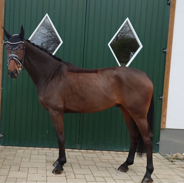 For sale is this handsome 5-year-old all-rounder sired by Si Senor M out of Lord Loxley, who provides great pleasure both in the dressage arena and over jumps! Recently placed in Dressage Horse Class A, he consistently demonstrates focus and eagerness to learn in the ring, so he is sure to achieve further successes next year. Playfully quick and intelligent, he has already learned several movements, such as shoulder-in, and will soon be ready to compete in class L. He also shows great talent in show jumping and can definitely participate in competitions next year. He handles well and is cautious, making him a pleasure to ride. Overall, he is a truly uncomplicated horse who remains completely relaxed in any situation—whether at competitions, at home, in the field, with the farrier, or during transport. He is a very social type who enjoys human attention as well as the company of other horses. If you are looking for a high-quality, clear-headed horse that brings daily joy, "Salza" is the perfect choice. Due to his versatile aptitude, we can also easily see him excelling in eventing. Excellent X-ray images are available. "Salza" is located in 35708 and can be visited and tested at any time. For inquiries and further questions: +49 176 20052380, also available via WhatsApp. Price negotiable for quick transaction.