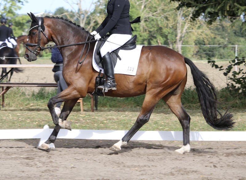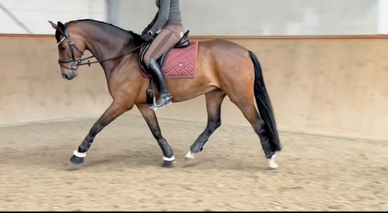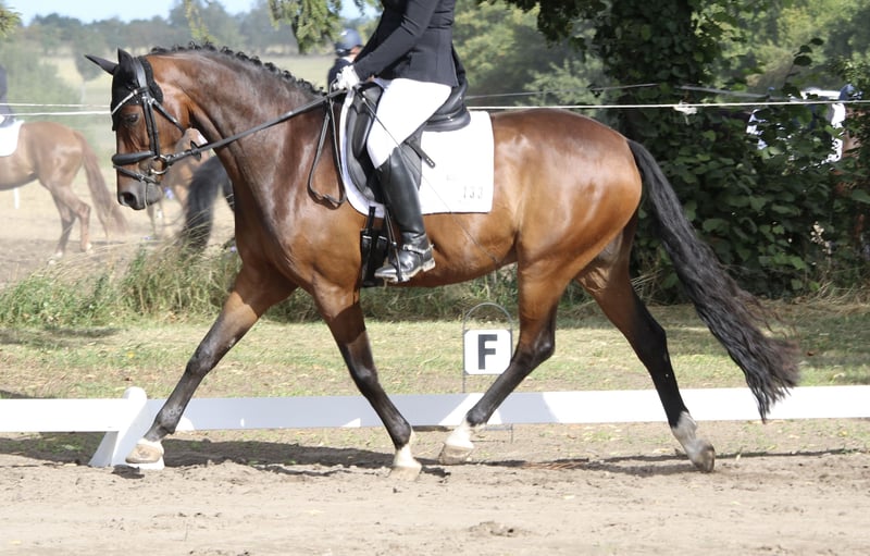 Weit unter Wert auf Grund privater Situation und Befund des Pferdes (PSSM2 positiv - muss getreidefrei gefüttert werden). 8-jähriges Dressurpferd im kleineren Rahmen (ca. 1,65) Hübscher Typ für Damen oder Mädchen, brav. Mehrfach A und L platziert. Fliegende Wechsel klappen schon ganz gut. Traversalen im Ansatz. Bei ernsthaftem Interesse und der Möglichkeit einer schnellen Abwicklung bis Ende November, gerne anschreiben. Ich schicke dann nähere Infos zur Abstammung und Videos. Röntgen und klinisch vom Frühjahr 2025, alles o.B.. Röntgen kann vorab verschickt werden.