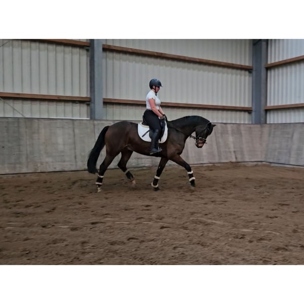I am offering my 8-year-old gelding Cini Mini for sale. He stands approximately 1.65 meters (16.1 hh) tall and is sired by Comfort. Cini Mini has already gained experience in E- and A-level dressage competitions. Additionally, he has placed in Dressage Horse A classes. He shows great enthusiasm for his work and possesses good basic gaits. Under saddle, he has a pleasant forward movement and is easy to ride on the bit. He also enjoys jumping. Although he has limited experience in this discipline, he clearly has the potential. Additional information: - Well-behaved in handling - Loads easily onto the trailer - Stands calmly for the farrier - Not suitable for beginners Health: - Recent comprehensive health check (October last year) with no findings - Teeth checked at the end of last year - Osteopath has treated him in March The sale is made solely for private reasons. Videos can be sent upon request. A trial ride costs €25, which will be deducted from the purchase price.