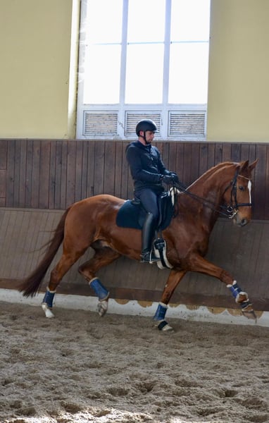 Due to retirement from competitive riding for age reasons, I am reluctantly offering this self-bred young horse into caring hands. He still requires training and needs an experienced, loving person to guide him. The gelding is not suitable for beginners! As he has not yet achieved any riding accomplishments—due to my lack of time and health—he is being offered at a significantly reduced price. Elton John x Whitney (Weltmeyer)