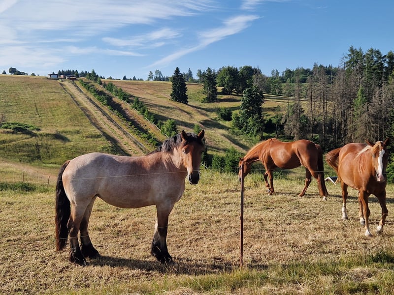 Absolut liebenswert , angeritten ,über den Sommer nochmal auf Koppel gestellt . Sie ist nicht die Größte ,Ihre Mutter ist bei uns und hat 162 cm . Uschi ist für jeden Spaß zu haben , ist angeritten ,kennt Schritt trab und Galopp unter dem Reiter , dabei immer brav und gut zu händeln . Sie geht alleine von der Herde weg ,absolut menschenbezogen ....