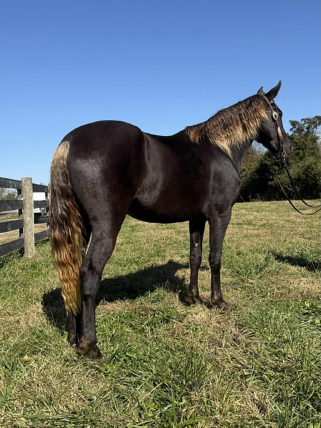 "AVAILABLE ON ONLINE HORSE AUCTION AT www DOT MagicHorseAuction DOT com BIDDING OPEN NOW thru TUESDAY | November 25TH! - BUY IT NOW AVAILABLE! *Final price will be determined on auction site* CONSIGNOR CONTACT INFO: Zach Brandenburg 513-508-3684 LOCATION: Moscow, OH Lilly is a absolutely gorgeous chocolate grade Rocky mtn mare that is 4 years old and stands 15 hands tall, this is a definite barn favorite who is not only beautiful but a fun ride! This mare is smooth and natural in her gait and has a very civilized demeanor, Lilly is calm cool and collected 100% of the time, aims to please and is truly enjoyable to have around. She rides out alone and in groups with no issues. She is easy to ride, traffic safe and confident on the trail. This is a horse that we all look forward to riding. She stands patiently and likes attention from her people. Although she is four she is a soul that rides and handles like an older horse but has her whole life ahead of her! We are very proud to be able to have a horse like her to present to the public!. Feel free to call or text 513-508-3684 or email brandenburg829@gmail.com thank you and God bless