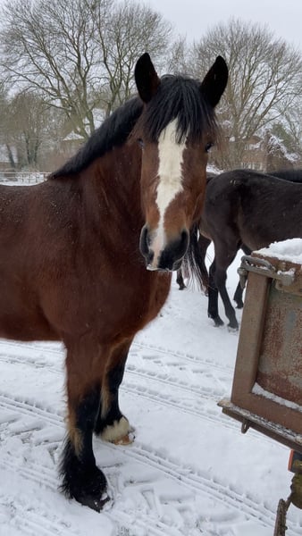Hallo Ich bin Nele und suche ein neues Zuhause. 1 Jährig bin ich zu meinen Besitzern gekommen und durfte dann erstmal in Ruhe groß werden. Mit 3 haben sie dann angefangen mich zu longieren und mich an die Kutsche gewöhnt. Zusammen sind wir dann auch ab und zu im Gelände spazieren gefahren. Es gab 2 Situationen in denen ich mich sehr dabei erschreckt habe, aber mit Zeit und Fleiß wird das in der Zukunft gar kein Thema mehr sein, denn ich habe Lust zu arbeiten und bin sehr gelehrig, lieb und entspannt. Eben wie ein richtiges Kaltblut. Geritten bin ich nicht, aber auch das wäre in Zukunft absolut denkbar. Aktuell genieße ich mit der Jugend, die Zeit auf der Koppel. Ich besitze einen Pferdepass, es gibt aber keinen Nachweis zu meinen Eltern. Trotzdem wäre ich aber interessant für die Zucht, denn ich bin nicht nur hübsch, sondern kann mich auch ganz gut bewegen. Ich bin es gewohnt täglich im Herdenverbund draußen zu sein und kenne viele unterschiedliche landwirtschaftliche Maschinen. Anhänger fahren musste ich bisher noch nicht, aber auch das Ein-Aussteigen üben wir zwischendurch immer wieder. Der Schmied besucht mich selbstverständlich regelmäßig und dabei bin ich brav. Wenn ihr Lust habt mich mal live oder per Videos näher kennenzulernen, dann meldet euch gern.