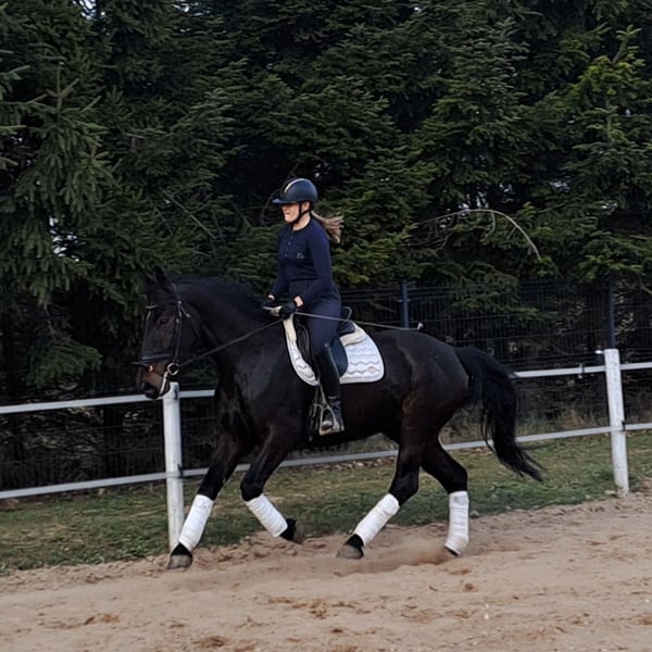 Afrodyta - Castrona Schlesiana con pedigree completo e libro genealogico principale 4 anni, altezza 1,68 m. È una splendida castrona schlesiana, nata nel 2022. Con il suo elegante mantello scuro e un'altezza di 168 cm, non è solo un vero colpo d'occhio, ma anche un ottimo cavallo da dressage. È anche abile al carro, è stata trainata a 2, con carro doppio. Questa cavalla si distingue per il suo carattere amichevole e socievole. È ben educata, buona nel maneggio, conosce cani e gatti. I suoi movimenti sono agili ed espressivi. Un fantastico cavallo da tempo libero. La cavalla è in buona salute, senza ferrature, e compatibile con il branco. Per interessi o ulteriori domande, sono a disposizione. Visite e prove di monta sono possibili su appuntamento.