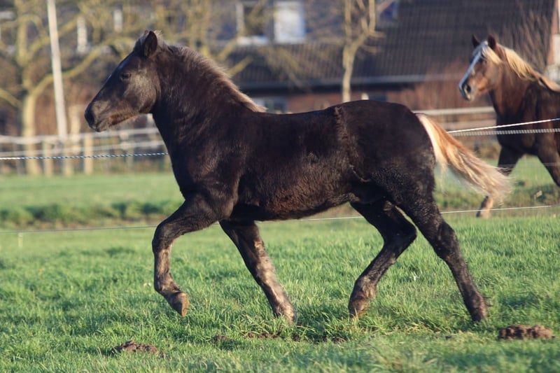 Zum Verkauf steht ein Schwarzwälder Hengstfohlen, geboren am 06.06.2025 Mirado ist von Geburt an täglich an der Hand, kennt putzen, geht brav am Halfter, gibt alle 4 Hufe und kennt natürlich den Schmied, Anbinden und alles was ein Fohlen so können sollte. Er ist dem Menschen stets zugewandt, lässt sich gerne kraulen und liebt es beschäftigt zu werden. Bis auf auf ein paar wenige weiße Haare auf seiner Stirn ist er ansonsten komplett ohne Abzeichen und Kohlfuchs. Mirado ist mit einem weiteren Stutfohlen bisher aufgewachsen und bisher nicht abgesetzt (könnte er aber jederzeit). Auf der Fohlenschau wurde er mit der Fohlenprämie ausgezeichnet und besonders für seinen Typ und die gute Trabbewegung gelobt. Mirado stammt ab von Markus aus der Rapunzel von Don Olewo Mutter Rapunzel ist Staatsprämienstute und legte 2011 erfolgreich ihre Leistungsprüfung ab. Bis 2021 war sie mit mir auf Fahrturnieren bis zur Kl. M erfolgreich. Unter anderem wurden wir 5. Auf der DJM 2021 in Lähden. Neben ihrer Leistungsbereitschaft zeigte sie aber auch bei Festumzügen, als St. Martinspferd oder auch bei Zirzensikvorführungen ihre Nervenstärke und Können. Vater Markus vom HuL Marbach war Reservesiegerhengst seiner Körung, Sieger bei seiner Leistungsprüfung und wurde 2017 Bundessiegerhengst. Mutter, Oma, Tante, Cousine (3. der Bundeskaltblutschau in diesem Jahr und Bundesprämienstute) können vor Ort besichtigt werden. PSSM negativ über die Eltern