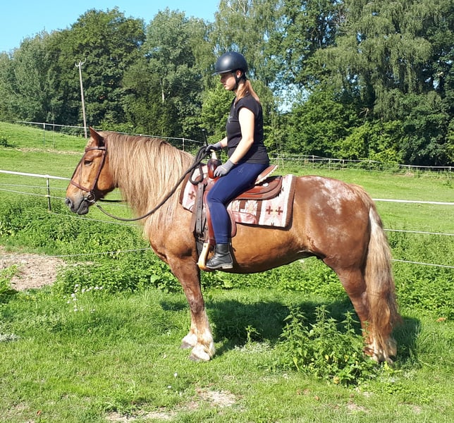 Leni is gewoon een lieverd! Mooie merrie met fantastische manen en staart, gewichtsdrager, extra braaf, super lief ook in de kudde, makkelijk te rijden, top om te zitten, om plezier te hebben voor iedereen, dekt ook lange ruiters goed, ideaal voor gezinnen, boerderijen, rijtherapie, 12 jaar, 152 cm. Voor wandelen, therapeutisch en recreatief rijden. Engels en westers zijn beide mogelijk. Open stal en kuddehouderij gewend, box is ook geen probleem. Paardenpaspoort beschikbaar. Al onze paarden kennen grond- en trailwerk, verschillende terreinen, auto's, landbouwmachines, maar ook koeien, ezels, schapen, varkens, honden, katten en kippen. Informatie en afspraken op 08536-2890292 (AB beschikbaar) of 0157-78378455 (geen mobiel netwerk op de boerderij). Alsjeblieft geen mail en geen WhatsApp verzoeken!! Gesloten op zondag. Accessoires en transport zijn mogelijk tegen een redelijke prijs. Elke klant krijgt een contractueel bedongen ruilrecht van 6 weken. Prijzen zijn vaste prijzen. Geen verzoeken tot betaling in termijnen gewenst. Kom je met een aanhangwagen en neem je deze mee, dan krijg je 100€ korting. Bij aankoop is 1000€ contant als borg verschuldigd. Als je het paard meteen mee wilt nemen, moet je natuurlijk wel volledig betalen. Wij maken samen met de klanten een rit met twee paarden naar keuze, zodat u uw droompaard kunt leren kennen en kunt kijken of het het juiste paard voor u is. Elke afspraak kost €35, of het nu gaat om paardrijden, voorrijden, bevoorrading, wandelen ... Elke extra renner (vriendin, vriend, zus, trainer...) betaalt hetzelfde als hij meerijdt, alleen al een blik kost ons tijd en dus 20€. Het bedrag wordt dezelfde dag nog teruggestort als er een paard wordt gekocht. Vanwege meerdere incidenten vragen we u om waarheidsgetrouwe informatie te verstrekken over het gewicht van de rijder. In het geval van onware informatie behouden wij ons het recht voor om af te zien van een proefrit ter plaatse. In het belang van onze paarden willen we niet verwachten dat onze goed gebouwde paarden meer dan 120 kg wegen. Aangezien dit een levend dier is, zijn dit slechts indrukken van de verzorger en geen verzekerde kenmerken van het paard. Meer paarden in mijn andere advertenties of op aanvraag.