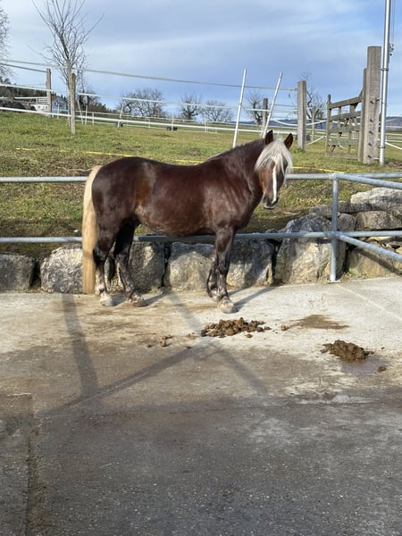 Schwarzwälder Kaltblut Wallach sucht Bestplatz Standort: Schweiz, Kanton Baselland Geburtsdatum: 05.02.2020 (etwas über 5.5 jährig) Stockmaß: ca. 152 cm, wächst noch 1-2cm Vater: Malibu VV: Modus von Montan Mutter: Nanny Mc Phee Herkunft: Schwarzwald Equidenpass vorhanden Importpapiere vorhanden - 01.04.2022 Er wurde mit zwei Jährig gelegt und dann von mir selber in die Schweiz importiert. Er ist neugierig und sehr menschenbezogen, lernfreudig, kontaktfreudig und freundlich. 🐴 Ausbildung und Arbeit • War von Sept. bis Dez. 2024 im Beritt • Beherrscht dem Alter entsprechend alle drei Grundgangarten unter dem Reiter, Übergänge, Rückwärtsrichten und Halten • Kennt Longieren und Bodenarbeit • lernt seit Ende Frühling das Gelände unter dem Reiter in Gruppen kennen. Dabei zeigt er sich sehr sensibel und auch ängstlich. Alleine war er noch nicht draussen. Ich habe ihn, seit ich ihn mit zwei Jährig in die Schweiz geholt habe. Er durfte im Herdenverband aufwachsen und ich lehrte ihm das Fohlen ABC, danach Bodenarbeit, sowie Spaziergänge im Gelände. Die weitere Ausbildung erfolgte durch einen professionellen Bereiter ruhig und schonend, seinem Wachstum entsprechend. Mit über 4.5 jährig startete der Beritt. Er wird freizeitmässig Western geritten, was aber noch gut geändert werden kann. Den momentanen Westernsattel habe ich in Miete, diese kann evtl. übernommen werden. Diverses Zubehör wie Trense, Westernzaum, Neoprenpad, Putzzeug, Apotheke etc. gebe ich dazu. 🐴 Haltung und Gesundheit • Steht zur Zeit in einer Paddock Box mit täglichen Weidegang. Ist sozial, kontaktfreudig und unkompliziert • jährliche Impfungen, sowie jährliche Zahnarztbesuche werden penibel eingehalten. Dabei zeigt er sich lieb und unkompliziert im Umgang mit der Tierärztin • alle vier Hufe beschlagen 🐴 Verkaufsgrund Ich habe ihn vor knapp 4 Jahren mit sehr starkem Übergewicht gekauft und mir erhofft, ihn durch meine Abnahme bald möglich reiten zu können. Nun steht ein Pferd, dass arbeiten möchte im Stall, ich bin aber noch viel zu schwer. Leider läuft die Gewichtsabnahme nicht so wie gewünscht und bringt auch weitere gesundheitliche Folgen mit sich, wodurch er zu wenig gefordert wird. Ich wünsche mir für ihn eine ruhige Bezugsperson die ihn täglich Bewegen kann und eine grosse Weide mit anderen Pferden zum Spielen. Kein Kinder- oder Anfängerpferd AKU ohne Probleme möglich Gerne möchte ich ab und zu ein Bild von ihm bekommen und ihn, je nach Standort zwei- dreimal im Jahr an seinem neuen Platz besuchen. (Natürlich angemeldet) 😊 Ausserdem möchte ich das Vorkaufsrecht, bei Weiterverkauf, damit er kein Wanderpokal wird. 🐴 Platz vor Preis