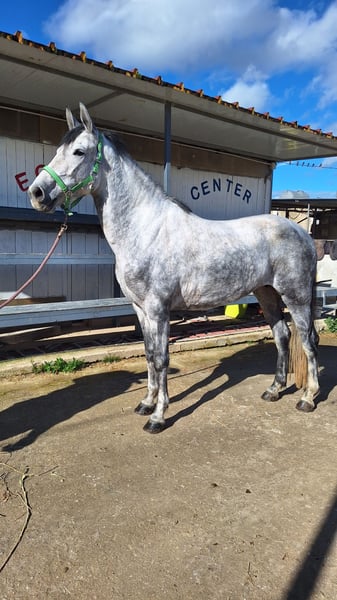 Elegante giumenta Sella Italiano, nata nel 2019, pronta a conquistare il cuore di appassionati di salto. Di colore grigio, questa splendida cavalla si distingue per la sua presenza e il suo carattere equilibrato. Con un'altezza al garrese di circa 155 cm, si presenta come un'ottima compagna per chi desidera sviluppare un percorso nel salto ostacoli. La sua conformazione e il suo temperamento ben equilibrato la rendono adatta a cavalieri di livello Base o avanzato, pronti a lavorare con una partner affidabile e versatile. Perfettamente saldata e ben ridenata, questa cavalla Sella Italiano rappresenta un’opportunità unica per chi cerca un animale di qualità, con ottime potenzialità sportive e un carattere piacevole.