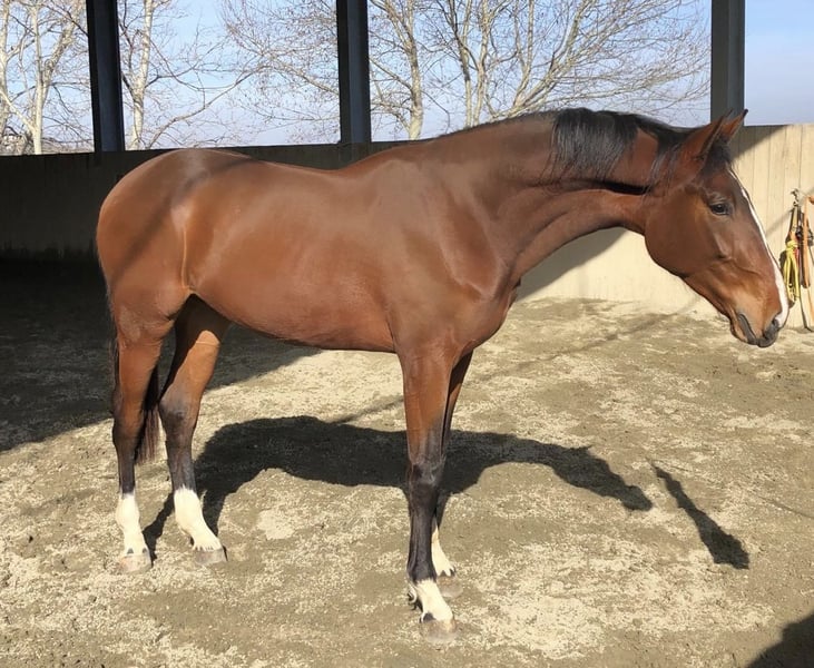 Italienischer Sattel, schönes Modell, ausgeprägter Charakter. Leichte und elastische Bewegungen, perfektes Gleichgewicht. Pferd ohne Ängste und gelassen. Ausgezeichnete Abstammung von Springpferden.