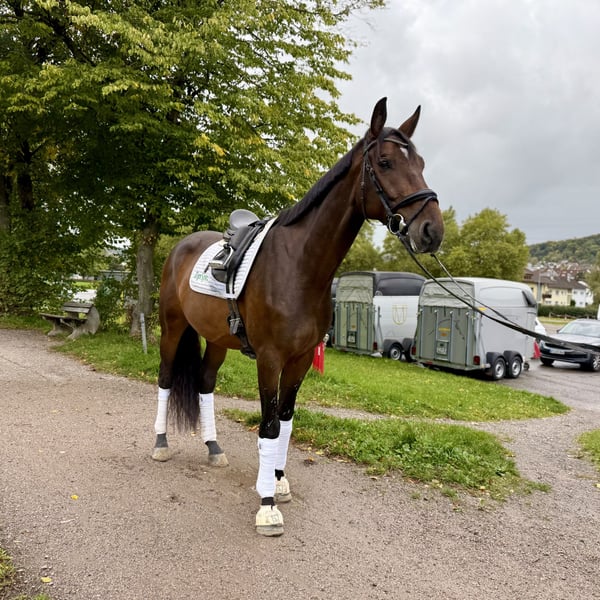 Atemberaubender 4-jähriger Wallach von L’Arc de Triomphe aus Tenerife VDL. Dieses vielversprechende junge Pferd ist seit nur drei Monaten im Sattel und beeindruckt bereits mit drei hochwertigen Gängen – besonders hervorzuheben ist sein herausragender Schritt! Er verbindet ein wunderbares Temperament mit einem freundlichen, willigen Charakter, was ihn sowohl am Boden als auch unter dem Reiter leicht zu handhaben macht. Mit 1,77 m ist er ein großer Pferd, das auch für Reiter kleinerer Statur eine bequeme Sitzposition bietet. Wie im Video zu sehen ist, ist der Reiter nur 1,65 m groß – ein Beweis für seine ausgezeichnete Rittigkeit und Handlichkeit. Mit seinem Sprungvermögen, Temperament und seiner Rittigkeit ist Le Roix Triomphant ein Pferd mit sehr viel Potenzial für die Zukunft. ✅ Röntgenaufnahmen auf Anfrage verfügbar. 💶 Eine Proberittgebühr von 50 € ist erforderlich, um Reittourismus zu vermeiden und nur ernsthafte Interessenten zu gewährleisten. 📍 Standort in Deutschland, an der Schweizer Grenze. 📩 Für weitere Informationen: info@daniadressage.com