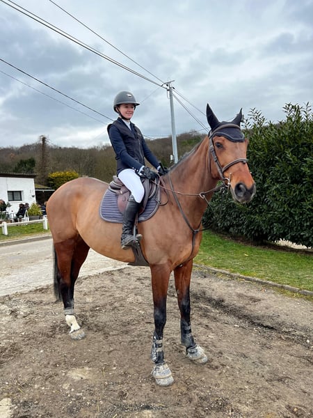 FRAGANCE MANCIAISE, 10 Jahre, Tochter von TRESOR und VRAGANCE MANCIAISE Wunderschöne Stute, die derzeit im Amateur- und Profisport auf 125 cm Turnieren unterwegs ist, mit Potenzial für 130 cm oder mehr. Sie geht regelmäßig ohne Probleme im Gelände aus, lässt sich problemlos auf- und verladen sowie reisen. Aktuell wird sie von einer 18-jährigen jungen Reiterin geritten. Charakter: liebevoll, ehrgeizig, im Alltag leicht zu handhaben, ehrlich im Springen (keine Weigerungen). Impfungen, Wurmkuren, Zahnarzt, Osteopathie und Hufschmied: regelmäßige Kontrollen und stets auf dem neuesten Stand. Sichtbar in den Yvelines (Vallée de Chevreuse). Zögern Sie nicht, mich für weitere Informationen zu kontaktieren. VIDEOS AUF ANFRAGE