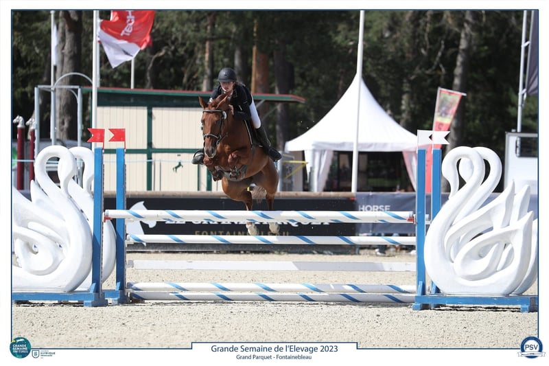 Happy du Banney, an 8-year-old mare standing 1.56 m at the withers, barefoot. By Toldo du Banney and Nausicaa Delamotte, sired by Rif du Crocq. A very gentle and easy-going mare in daily handling, without any vices, very affectionate and attached. A mare with bloodlines. Lifetime assurance, she never refuses. Very honest over fences, currently competing in 115/120 cm classes, with potential to go 130 cm. Participated in the grand final at Fontainebleau during her 6-year-old year (90% clear rounds). An excellent mare for amateur riders to start with and to develop further in these competitions. Mane ✅ Transport (van, light vehicle, truck) ✅ Can go on rides alone or in company ✅ Lives in a box/stall or paddock. Can live with other horses or ponies. Up-to-date on vaccines and deworming. Suitable for at least a riding level of Galop 5. Veterinary check and radiographs included in the price. Will only be sold to a 5-star family ⭐️⭐️⭐️⭐️⭐️ Price upon private message.