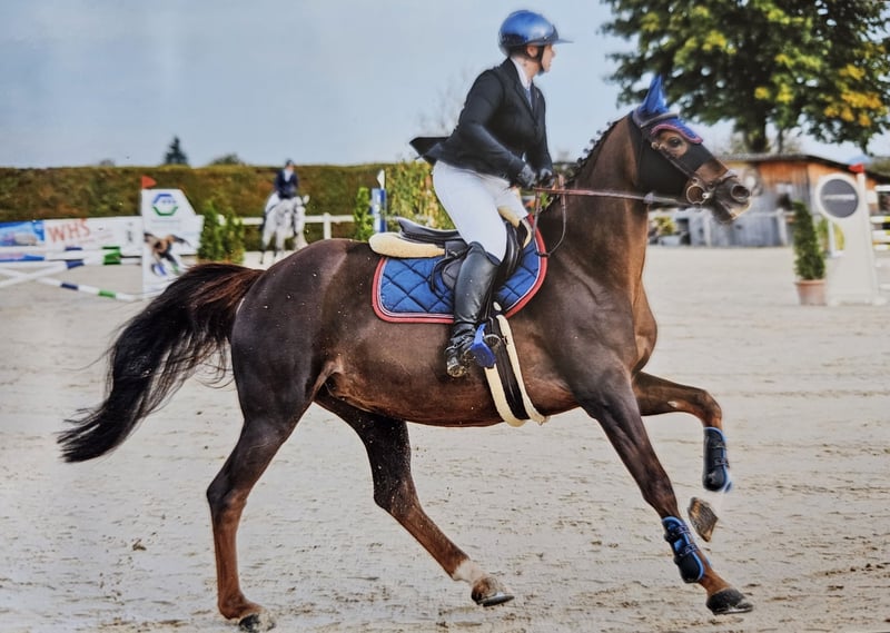 À vendre, magnifique jument Selle Français de 9 ans, fille de Up to You x Quick Star. Gzena est une jument très affectueuse et attachante. Elle est très proche des humains. Dans le travail quotidien, elle est toujours motivée et amicale. De plus, elle n'est pas une jument qui se cabre ou qui donne des ruades. Gzena aime beaucoup sortir seule ou en groupe en extérieur. Elle est absolument sûre dans la circulation. Cette petite jument alezane a de l'expérience en compétition. Cependant, elle devient chaude et n'est pas tout à fait simple lors du saut d'obstacles ! Pour un intérêt sérieux et d'autres questions, n'hésitez pas à me contacter.