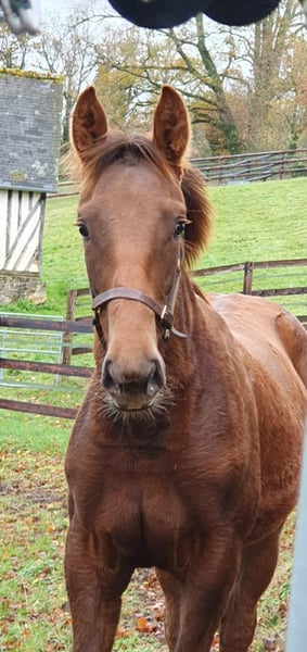 This magnificent Selle Français filly captivates with her presence, expression, and modern conformation. Bred from a top-quality cross, she combines the power of German dressage with the finesse and versatility of the best French bloodlines. A daughter of the renowned Vitalis, a world-class dressage sire and sire of numerous international performers, she inherits expressive, elastic gaits and a naturally uphill movement. Her dam, Temesis (by Ciel d’Espoir, also known as Quattro B), has also excelled in pure dressage up to the St. Georges level (IDR 127), with a remarkable career from a young age: winner at the Haras du Pin Regional Championships at age 3 – in conformation, movement, and free jumping. The maternal line is particularly strong: a maternal aunt, Praga, has an IDR of 136; an uncle, a private stallion, has an ISO of 131, demonstrating a truly versatile, performance-oriented pedigree with distinguished horses in dressage, show jumping, and conformation. Praga is a well-handled, balanced filly, very people-oriented, with an exemplary temperament. She is raised in excellent conditions, regularly monitored (farrier, vaccinations, deworming up to date). Her modern build and harmonious frame suggest an adult height between 16.1 and 16.3 hands. She already displays beautiful movement, great energy, bounce, and a willing attitude in training and preparation for breeding competitions. A promising young mare, combining elegance, mental strength, and top-tier genetics, ideal for a rider or breeder seeking to invest in a modern, promising dressage lineage.