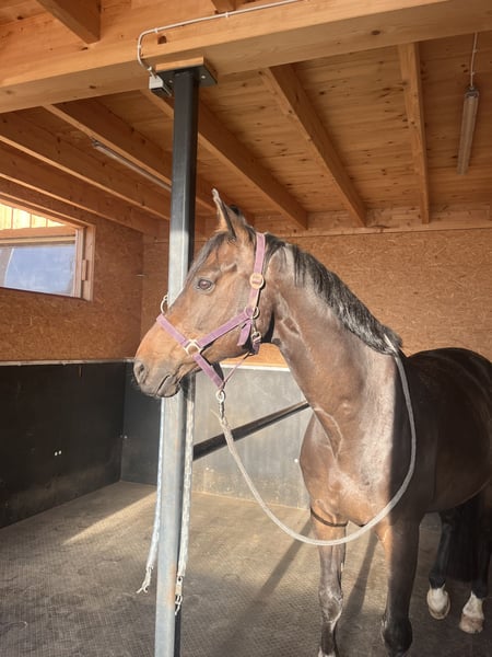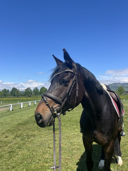Unfortunately, due to my retirement from competitive riding, I have to part with my horse. He is an absolutely lovable, well-behaved, and reliable partner. In show jumping, he always gives his best – he jumps confidently over everything and has competed up to 110 cm. He also enjoys hacking out and always has a lot of fun. He is highly motivated every day, eager to work, and always willing to cooperate. He has no vices, is very social, human-oriented, and affectionate. A true heart horse, now looking for the right person to cherish him. He will only be sold into the best hands, where he will continue to be supported and loved.