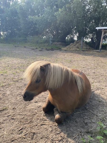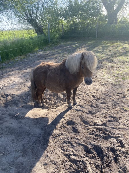 Zum Verkauf steht ein 13-jähriges Shetlandpony mit einem Stockmaß von ca. 88 cm. Er ist lieb im täglichen Umgang, aufmerksam und typisch Shetty charakterstark. Er braucht sichere, schon etwas größere Kinder oder pferdeerfahrene Menschen, da er kleine Kinder nicht optimal akzeptiert. Beim Hufschmied steht er sehr brav. Er kennt Bodenarbeit, kann einige kleine Tricks und arbeitet gern mit. Er ist nicht eingeritten, kennt jedoch Reitergewicht im Schritt (geführt). Die Abgabe erfolgt, da er ein kluges, aktives Pony ist, das regelmäßige Beschäftigung braucht, die ihm aktuell nicht ausreichend geboten werden kann. Ich wünschen mir für ihn einen Platz, an dem er geistig gefordert wird und idealerweise mit anderen Shetlandponys zusammensteht. Er wird nur in beste Hände abgegeben. Platz vor Preis.