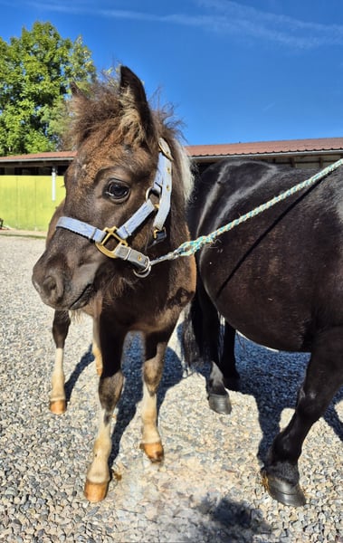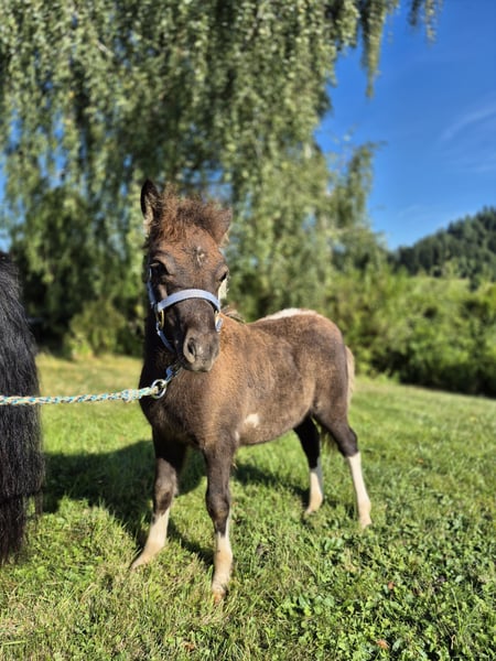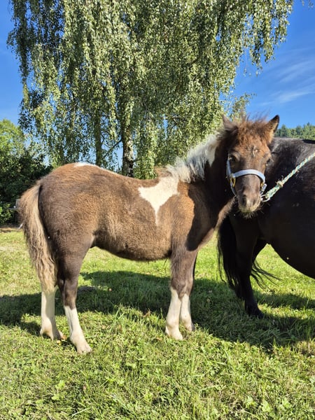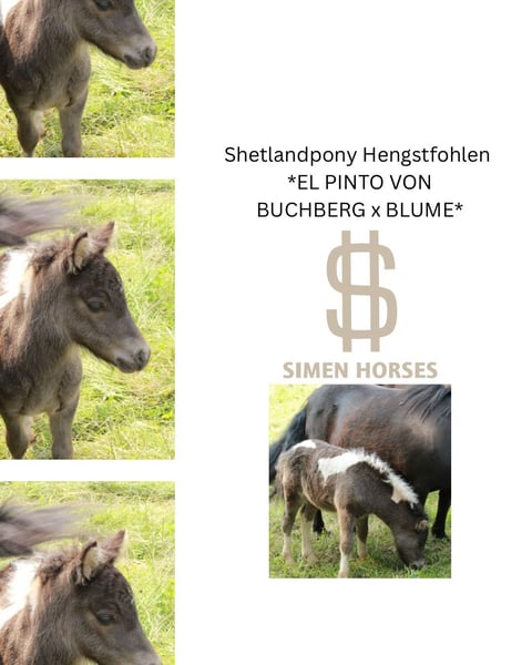 Original Shetland pony. Very well-behaved and kind in handling. Awarded with 8.5! Children's pony. Learns the foal ABC until moving out. Both parents are used in our children's riding school operation and also drive in front of the carriage. Growing up healthy on our large Black Forest pastures, in a herd. - Kind character - Easy to handle - Papers with ZfdP are applied for Mother: Blume Elite mare (Shetland pony with full papers) Father: El Pinto von Buchberg (Shetland pony see stallion advertisement) **Entering the yard and the pastures of the operation for viewings as well as riding of sale horses is always at your own risk! Exclusion of any warranty! For trial riding of our sale horses, we charge €50. This amount will be deducted when purchasing a horse.**