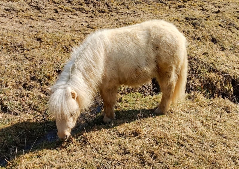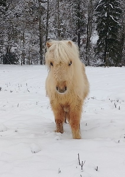 Very sweet Shetland Pony colt yearling Will be one year old on May 10th. Color is Isabell (Palomino). Regularly dewormed, vaccinated against tetanus twice, and receives regular hoof care. Slightly fence-shy, familiar with children and various farm animals. Halter-trained. Well-built and exceptionally cute! Estimated final height (Gypsy measurement): approximately 85-90 cm! Comes with pedigree documentation and a horse passport. He is ready to move at any time; transport within Austria is included in the purchase price!